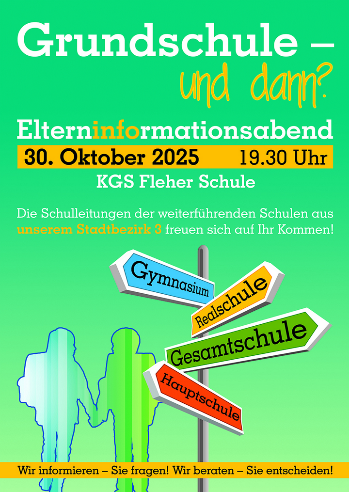Elterninformationsabend für die Grundschuleltern zum Thema „Übergang Grundschule – weiterführende Schule“ (Ort: KGS Fleher Schule)