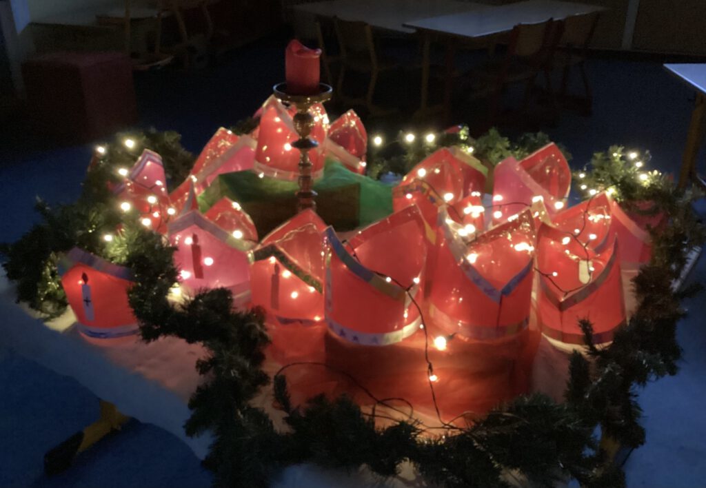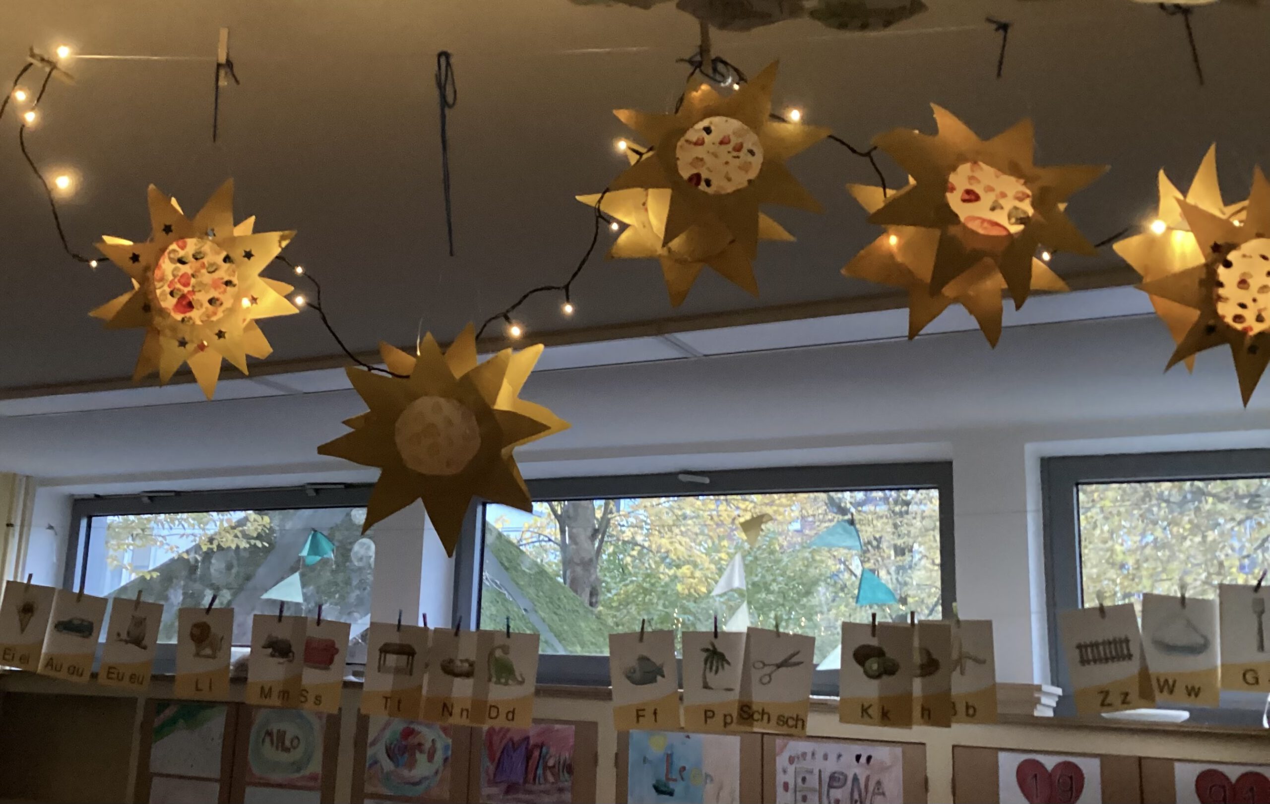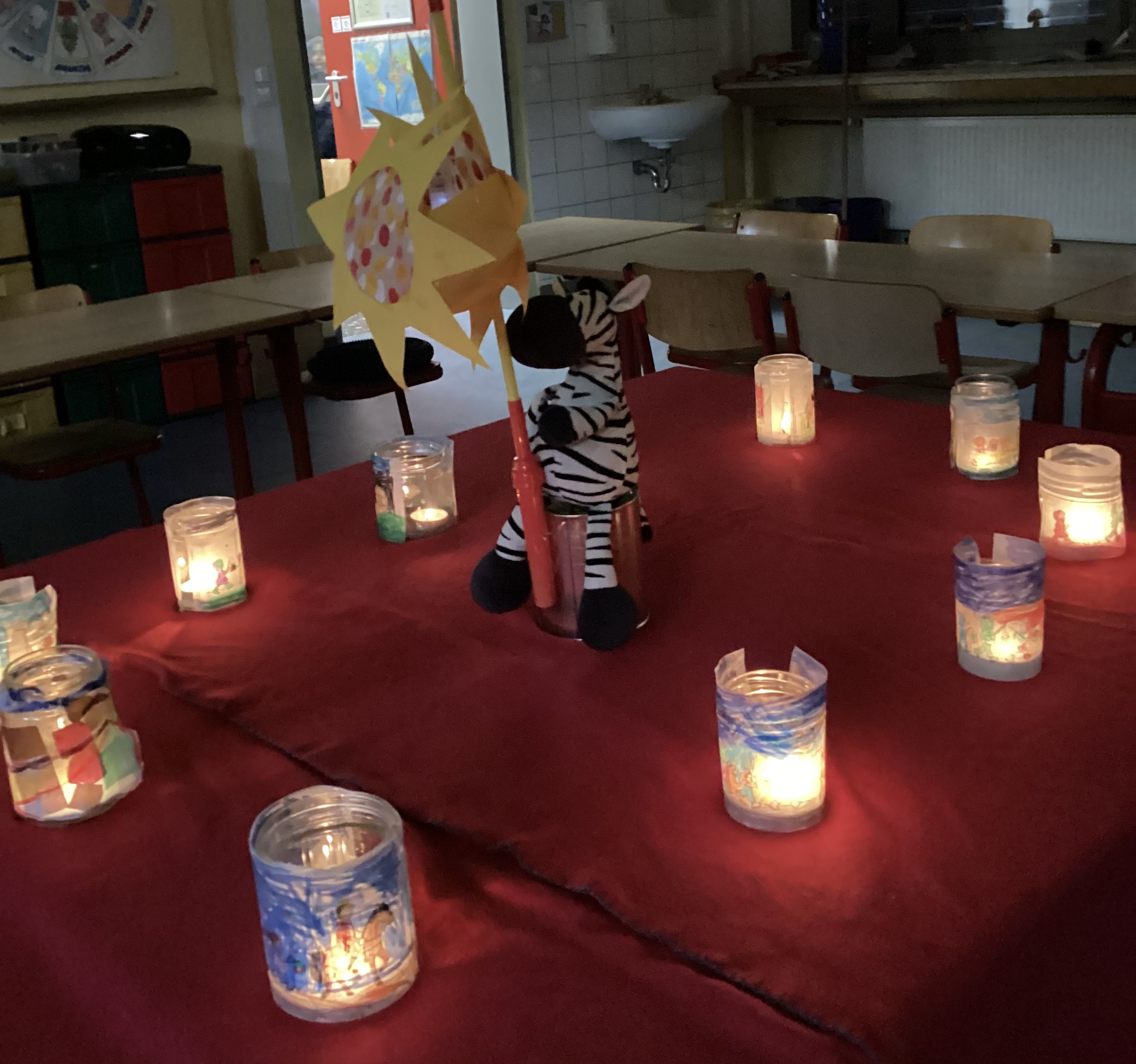 In den Klassenräumen hingen die Laternen an Fäden oder standen auf den Tischen.