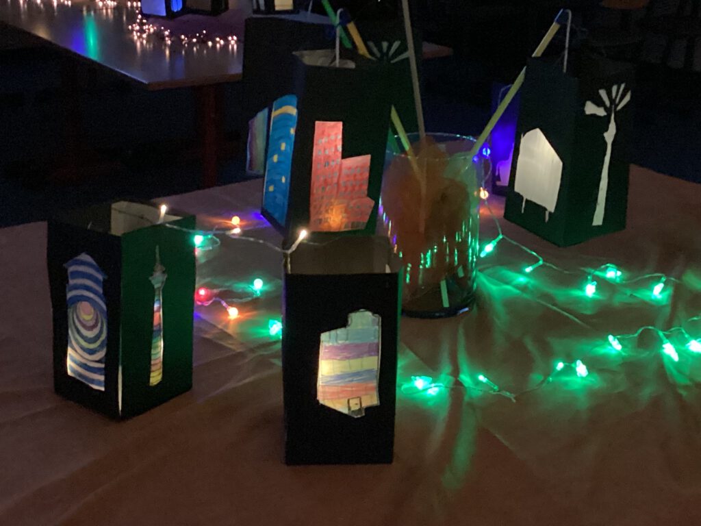 Jede Klasse hatte eine eigene Laterne, deswegen war jeder Klassenraum spannend. Die Eltern, Freunde und Geschwister durften kommen und sich die Laternen anschauen. Im zweiten Stock hatte der Förderverein eine Cafeteria aufgebaut, wo Kekse und Getränke angeboten wurden.